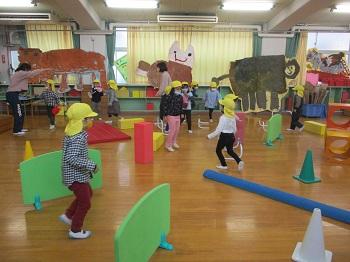 年少組は、体と心を動かすコオーディネーショントレーニング「南平COT」で、鬼ごっこを楽しみました。