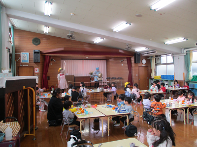 今日はお家の人にも、お手伝いしていただきました。年少たんぽぽ組は「いいにおいがするね」と見にきました。