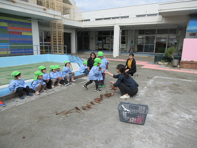 年少たんぽぽ組も、サツマイモをきれいに並べています。